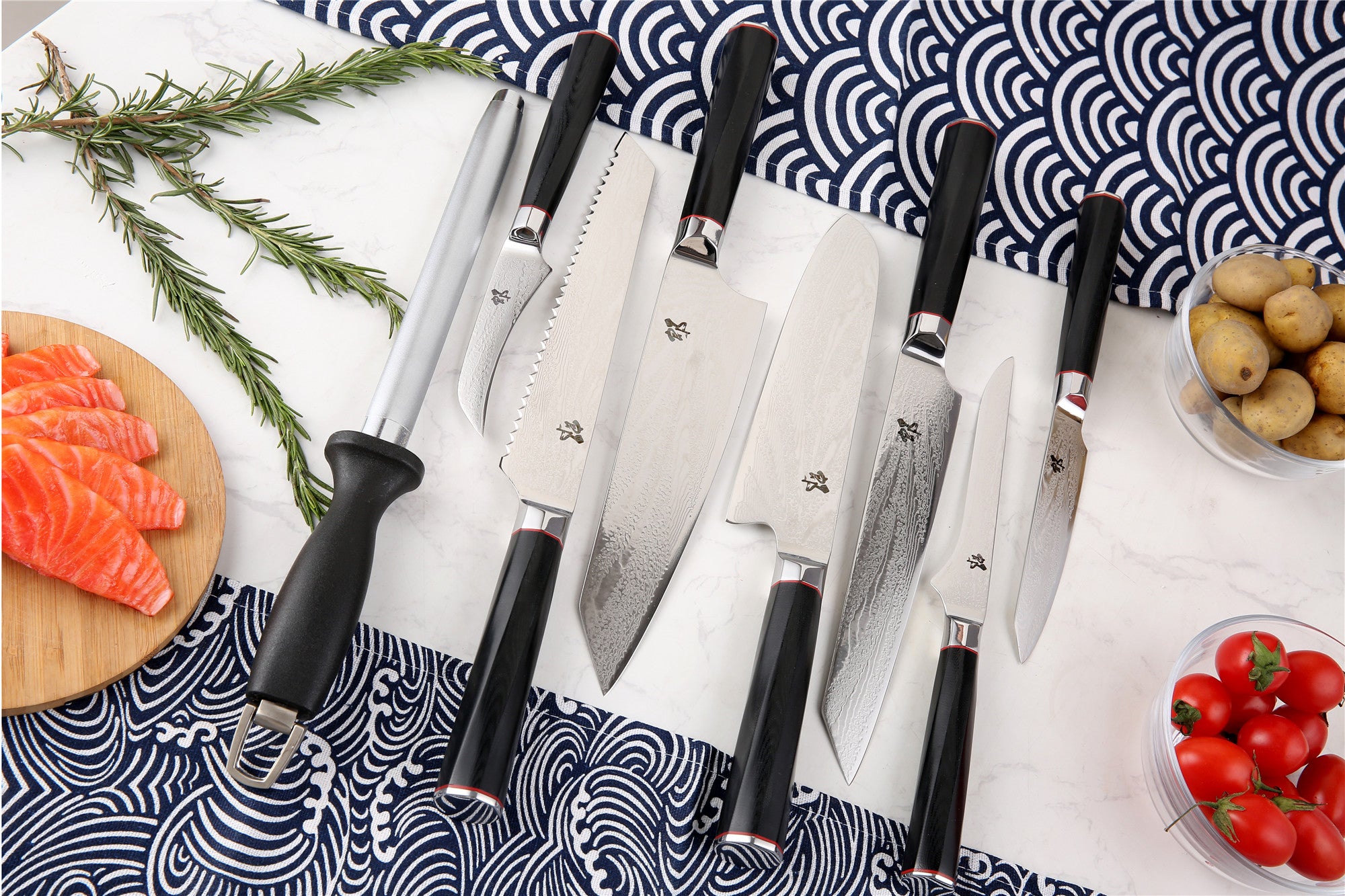 Blade : Xuan Series kitchen knife set is crafted with AUS10 Steel in the core, surrounded by 72 layers of SUS410 steels, forged together to what we called Damascus steel. This combination provides exceptional strength, durability and stain resistance, keeping the knife sharp and hard,maintains it's functionality for much longer time.